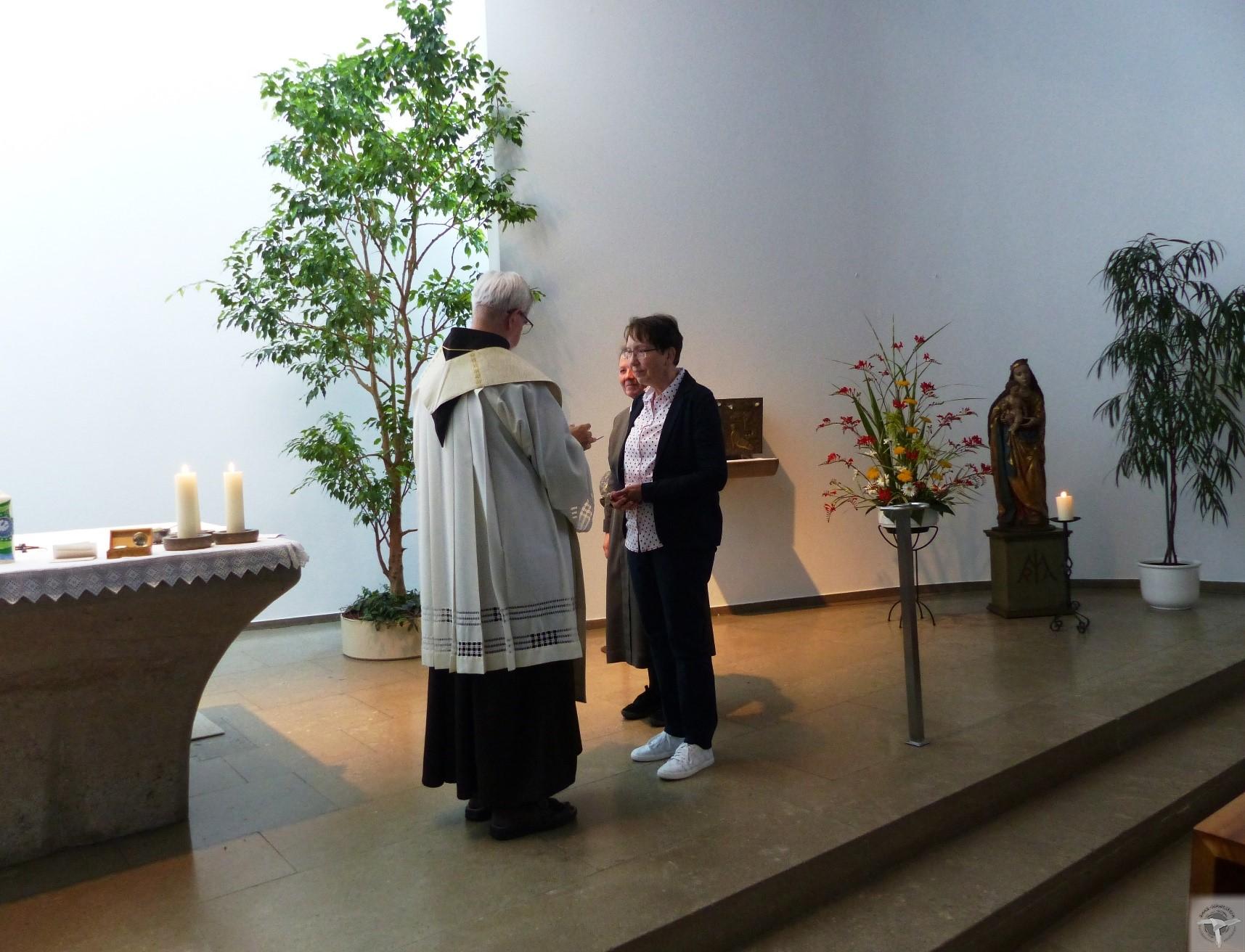 Am Samstag feierte Frau Michalzik in unserer Mutterhauskapelle ihre Aufnahme in die katholische Kirche. Im Auftrag von Bischof Gebhard Fürst konnte Pater Norbert Poeschel die Firmung spenden.