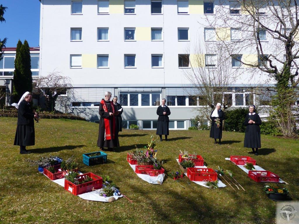 Dieses Jahr konnten wir Anna-Schwestern trotz der Coronapandemie mit unserem Hausgeistlichen Pater Norbert Poeschel den Palmsonntag in einer Eucharistiefeier mit Palmweihe feiern. Wir fühlen uns auch mit denen verbunden, die keinen Gottesdienst feiern können. Wir haben daher angeboten, das Palmzweige zur Weihe abgegeben werden können.