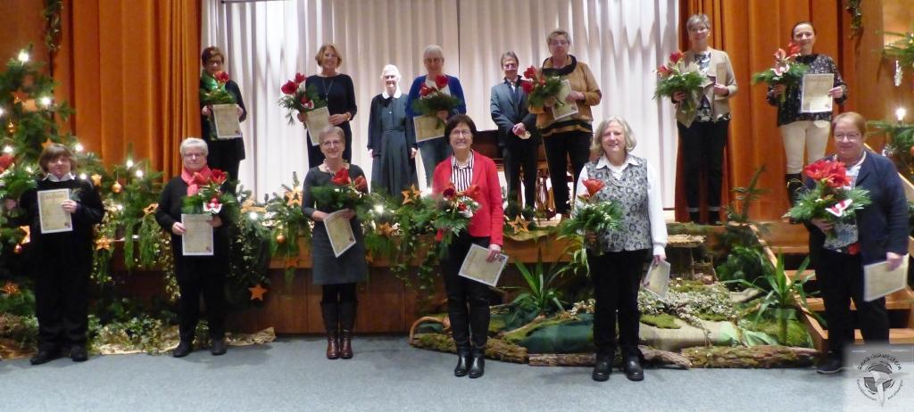Gemeinsam wurden die letzt- und diesjährigen Mitarbeiterinnen der Anna-Schwestern geehrt, die 15, 20, 25, 30, 35, 40 und sogar 45 Jahre in Seniorenheim, Tagespflege, Hospiz und im Mutterhaus dem Leben in seinen vielfältigen Facetten gedient haben und sich weiterhin engagiert einbringen.