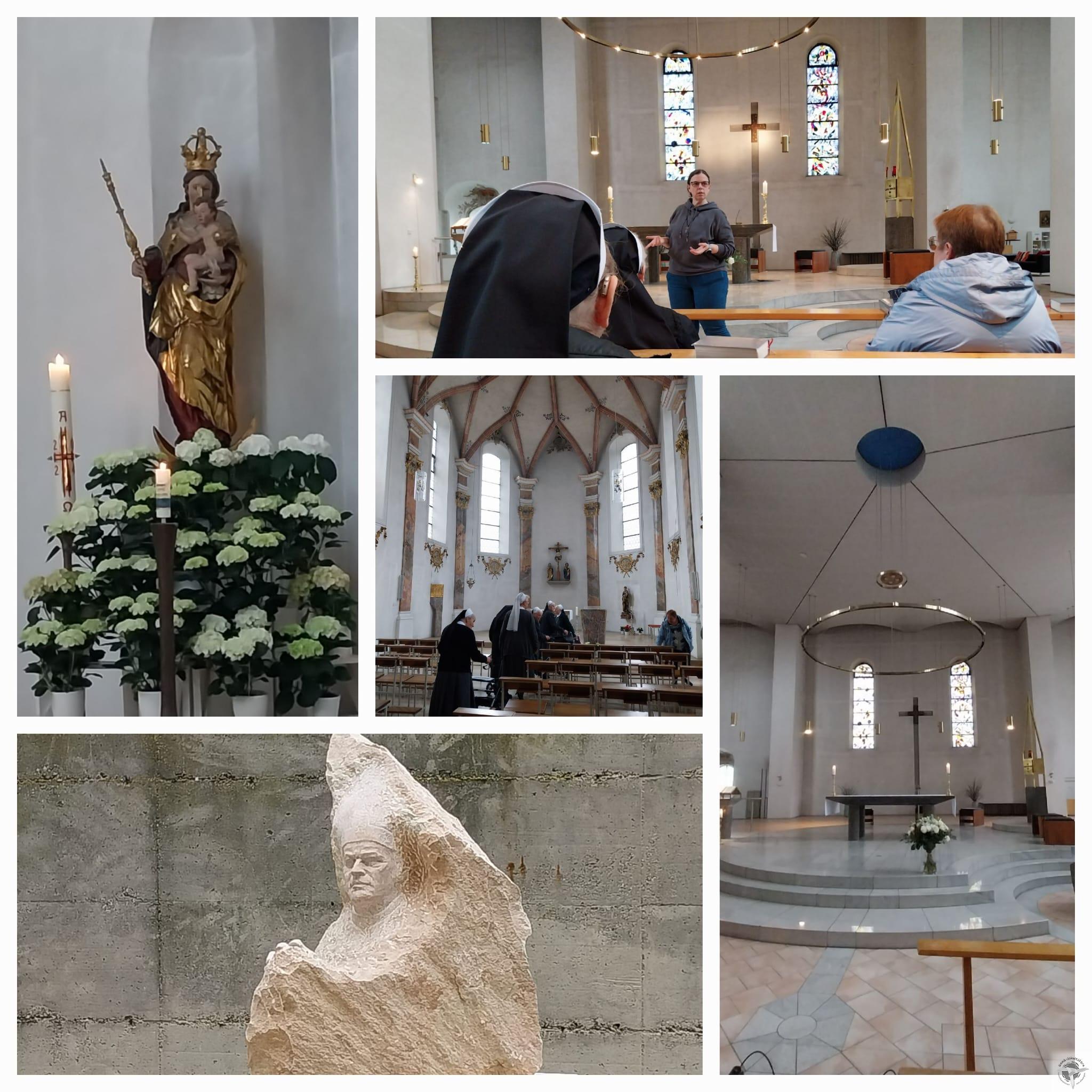 Die nächste Station war die Wengenkirche, die wir nach einem kurzen Fußweg erreichten. Hier hatten wir eine kurze Führung und feierten dann einen Maiandacht. Durch die alte Wengenkirche hindurch besuchten wir noch Bischof Sproll im Garten.