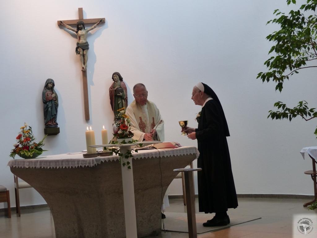 Bereits am Vortag dankte Schwester Veronika Mätzler den Jubilarinnen innerhalb einer Andacht und stellte heraus: „Gott ist der eigentliche Geber und Vollbringer allen Lebens und aller Fruchtbarkeit. Doch braucht er auch unser Mittun und unsere Bereitschaft, die geschenkten Fähigkeiten und Talente mutig einzusetzen.“