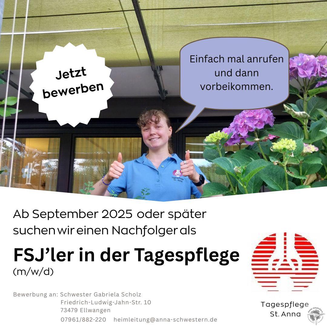 • Für unsere Tagespflege haben wir noch einen Platz für einen FSJ´ler frei.