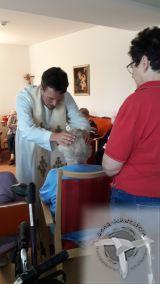 Danach besuchte er noch die Gäste in der Tagespflege, die Bewohner des Seniorenheims und die Gäste des Hospizes. Zum Abschluss des Besuchs war der Primiziant noch in das Refektor zum Mittagessen eingeladen. Es gab Linsen mit Spätze.
