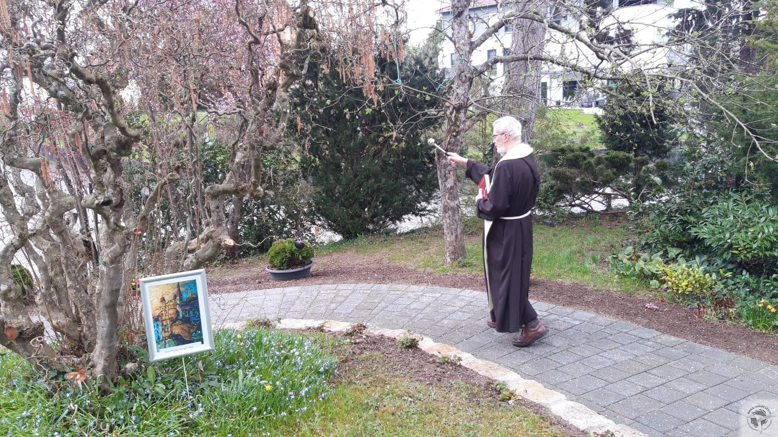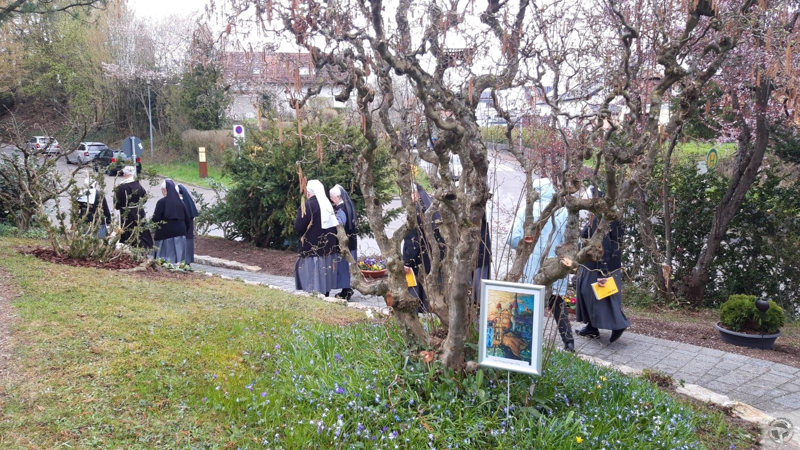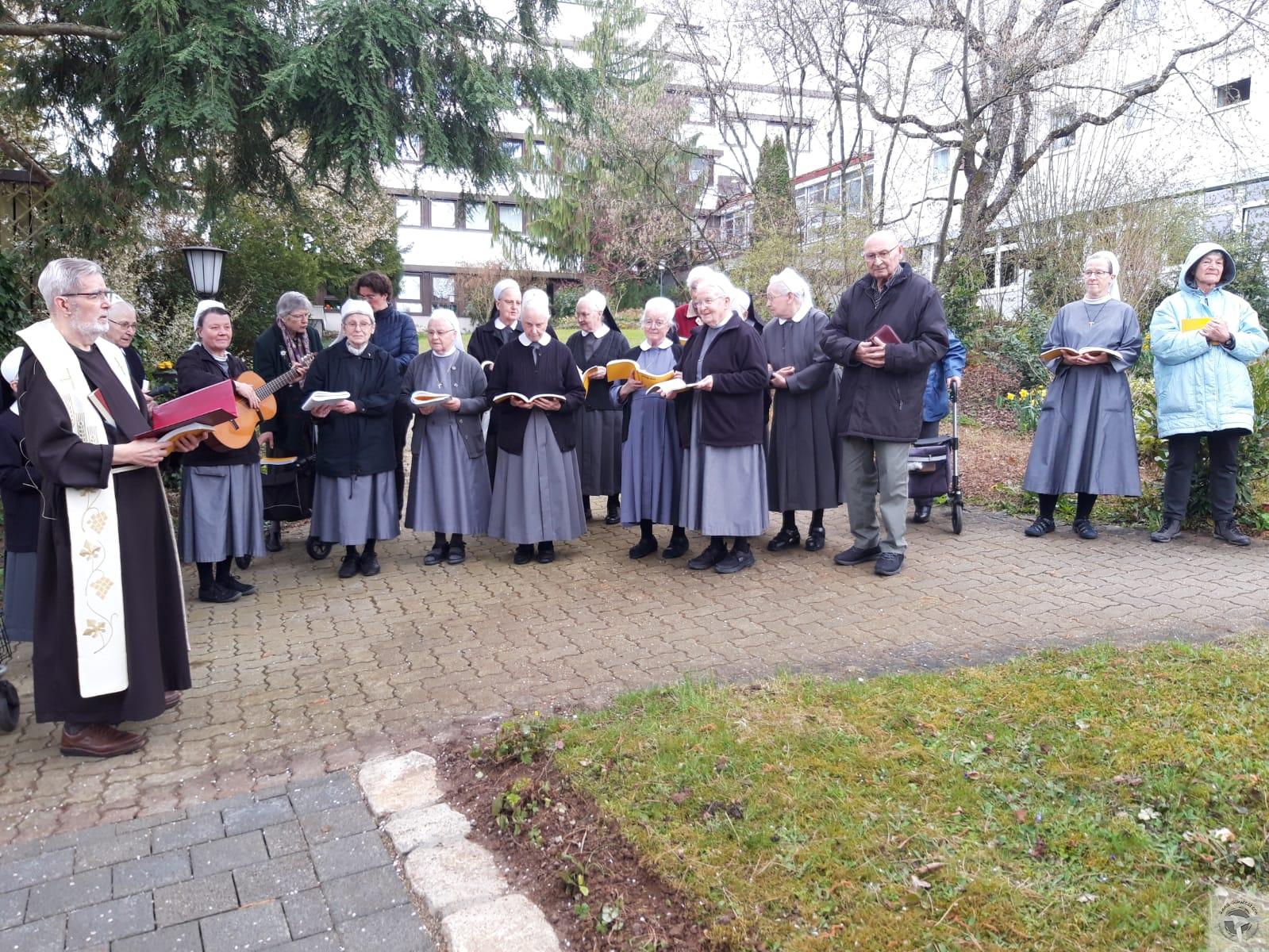 Bisher gab es eine Treppe zu unserem Mutterhauseingang. Nach den nun beendeten Bauarbeiten gibt es nun direkt daneben einen Weg für Besucher mit Rollator, Rollstuhl oder Kinderwagen ... . Der Weg bekam auch einen Namen - Pater Philipp Jeningen Weg. Pater Norbert nahm die Segnung nach dem Gottesdienst am Donnerstag vor.
